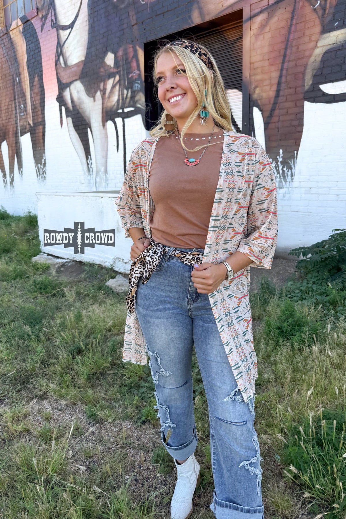 Wrap yourself in bold, Southwestern style with our Acoma Aztec duster! Featuring a striking, colorful aztec inspired pattern, this lightweight duster adds instant class to any outfit. Designed with an open front, and a flowy, flattering fit, it's perfect for layering over dresses, jeans, or shorts!