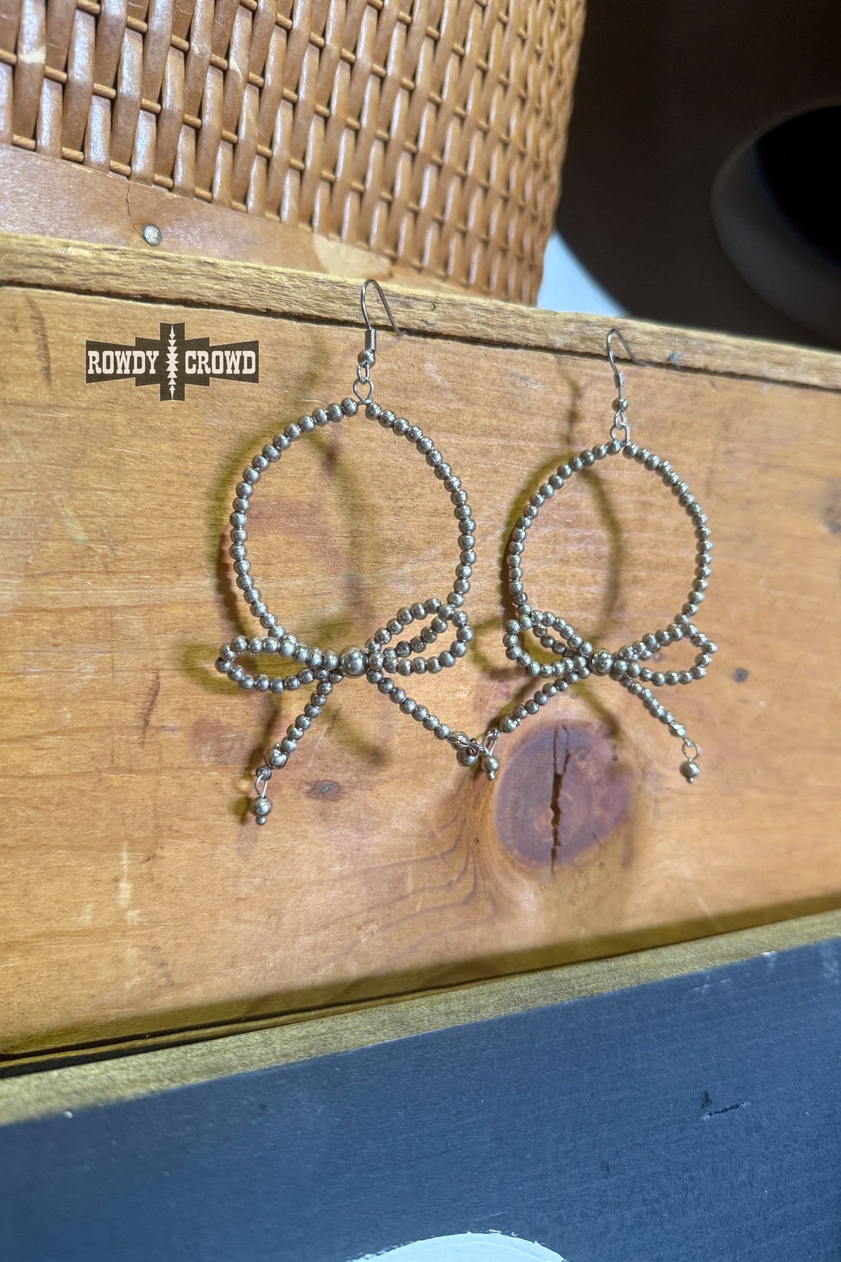 Bows are all the craze--Our lightweight Betty Bow Hoops are made of faux navajo pearls, featuring a hoop shape with bows at the bottom. These subtle hoops are perfect for all bow lovers.