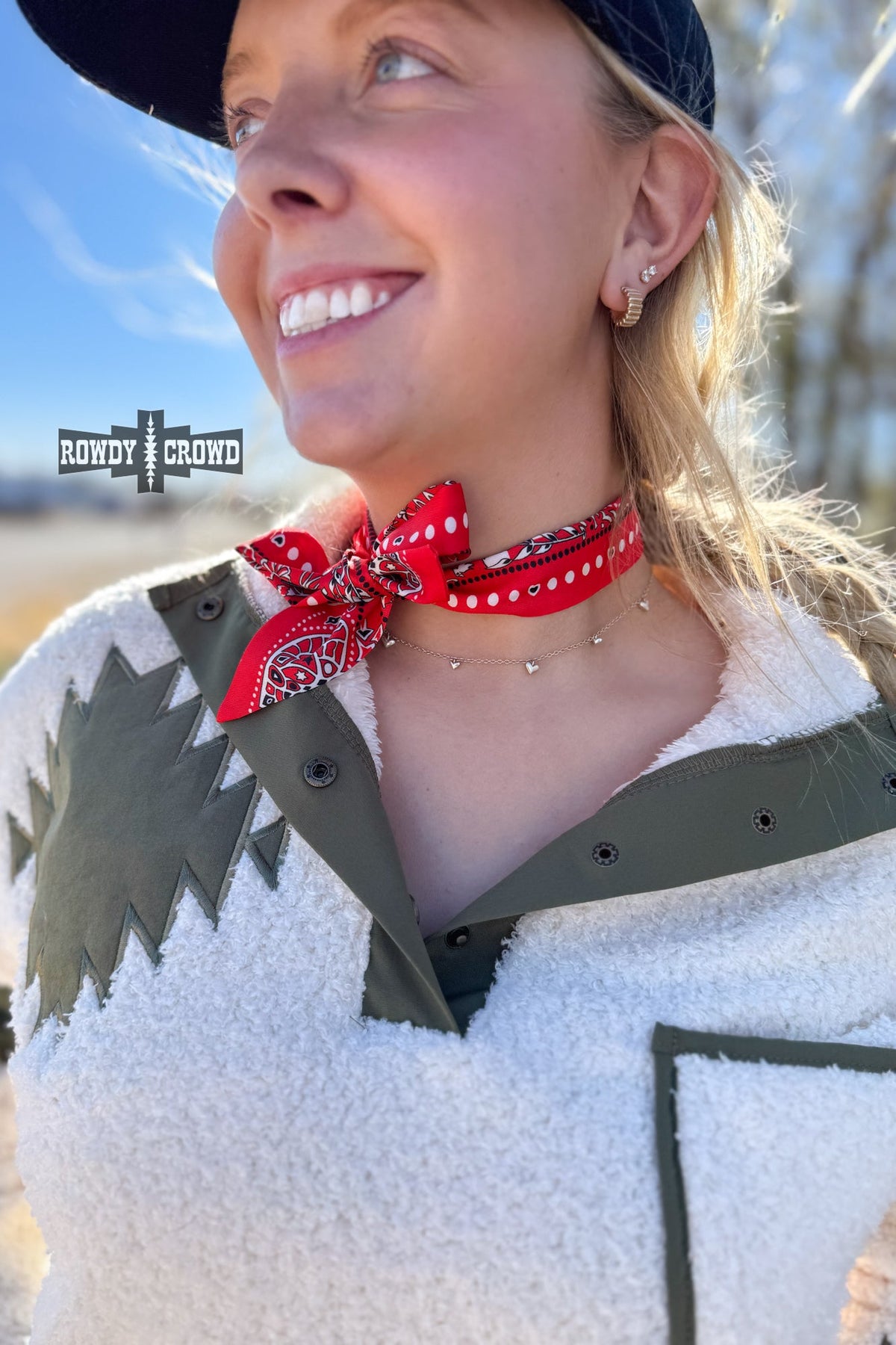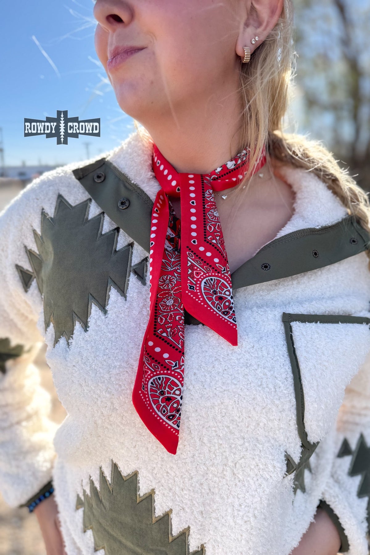 The Texas Tango Twillie brings fiery western flair in a bold, eye-catching package. This silky red twillie features a playful bandana-inspired print with hearts, florals, and classic paisley elements- perfect for adding a little sass and color to any outfit. Its lightweight feel and narrow shape make it easy to tie around your neck, hat, wrist, or bag.