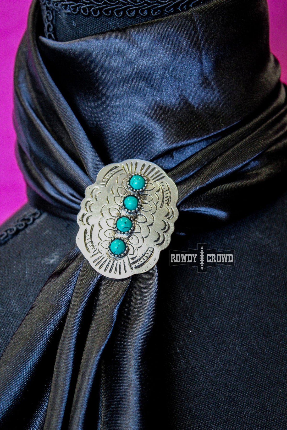 Silver stamped scarf slide/ ring with turquoise stones.